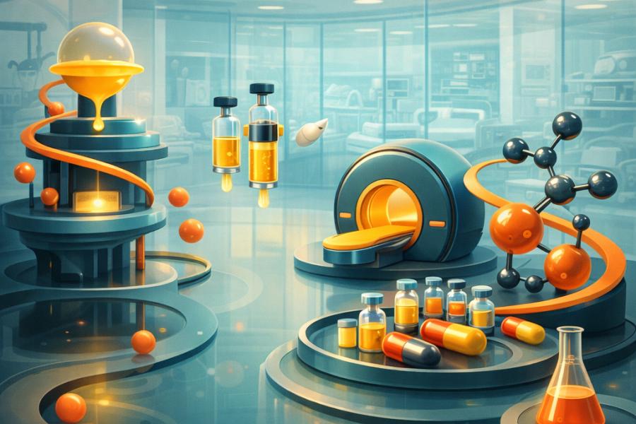 Radiopharmaceutical-specific product documentation with diagnostic vs. therapeutic segregation compliance.